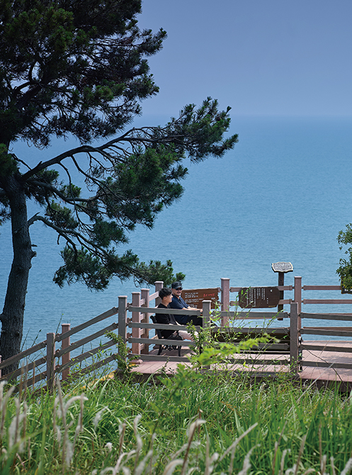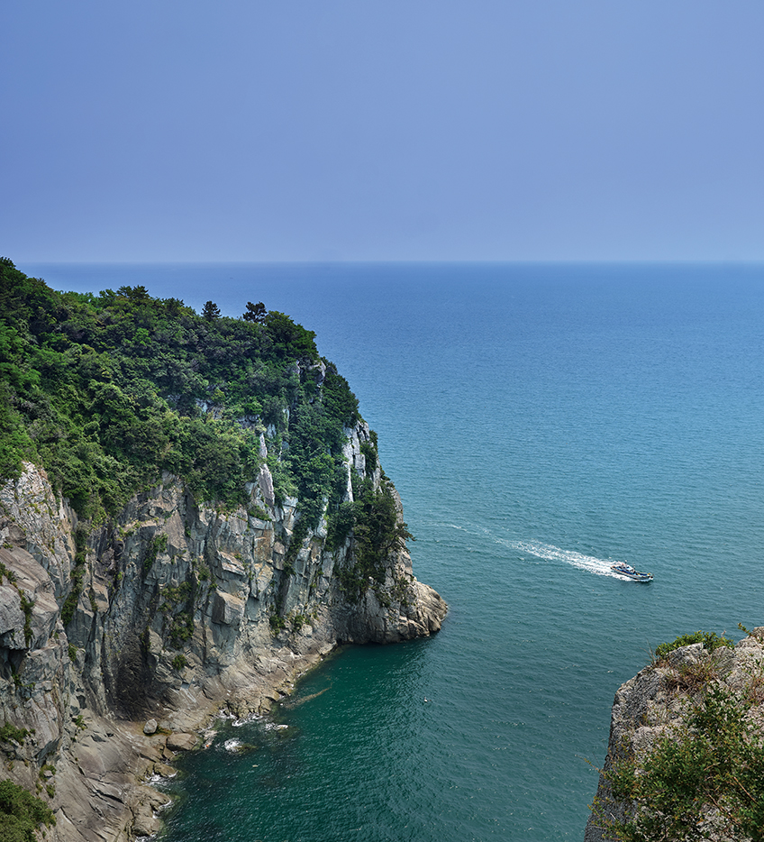 Dense evergreen trees earned the island the nickname “Geomuseom,” meaning “it looks black.” Cheonggudo (Map of the Green Hills) and Daedongyeojido (Territorial Map of the Great East), considered the largest and most detailed map produced during the Joseon era, marked this region “Geomado,” which was later renamed “Geumodo.” The cliffs are how people discovered this island. An old slope where people used to pass by to collect timber and seafood had not been used for 400 years, and after the island’s opening, the slope was restored into a cliff trail. The 18.5-km trail going from Hamgumi Dock to Jangji Village offers a breathtaking view of the ocean and comprise five sections connected as one road.