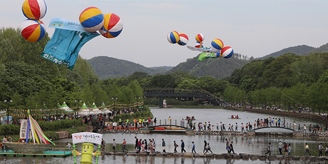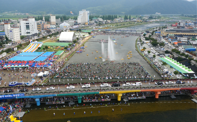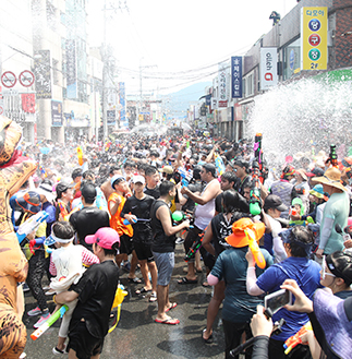 The water-filled course starts from the county’s resident hall and passes through Jungang-ro Street en route to the final destination of the parking lot by Jangheung Bridge. Water streams will constantly be shot along with water bombs from everywhere, soaking everyone in their path. Another highlight is the county’s traditional folk game gossam (tug-of-war) on water. Various gossam contests will also be featured in a series through village, national and visitor competitions.