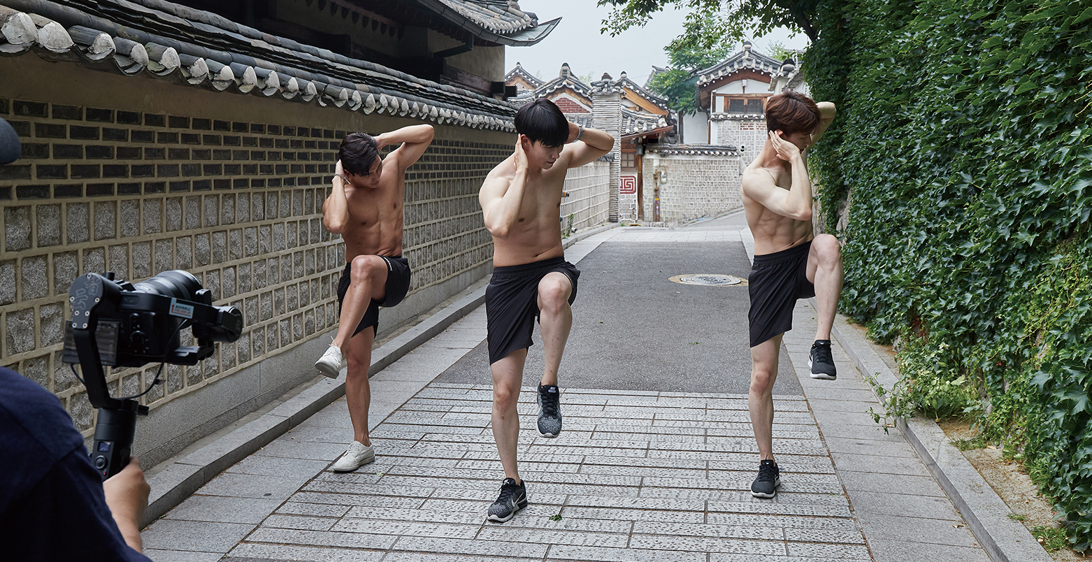 We consider every camera angle or include a stopwatch so that viewers do the exercises while watching our videos without difficulty. We sometimes shoot videos at places highlighting Korean culture or famous tourist sites, which makes our videos more dynamic and interesting. When introducing outdoor workout places on our YouTube channel, we try to include Korean tradition and modern culture as well. Our vision is to create a new fitness trend called “K-fitness” and make it famous abroad just like K-pop or K-beauty.