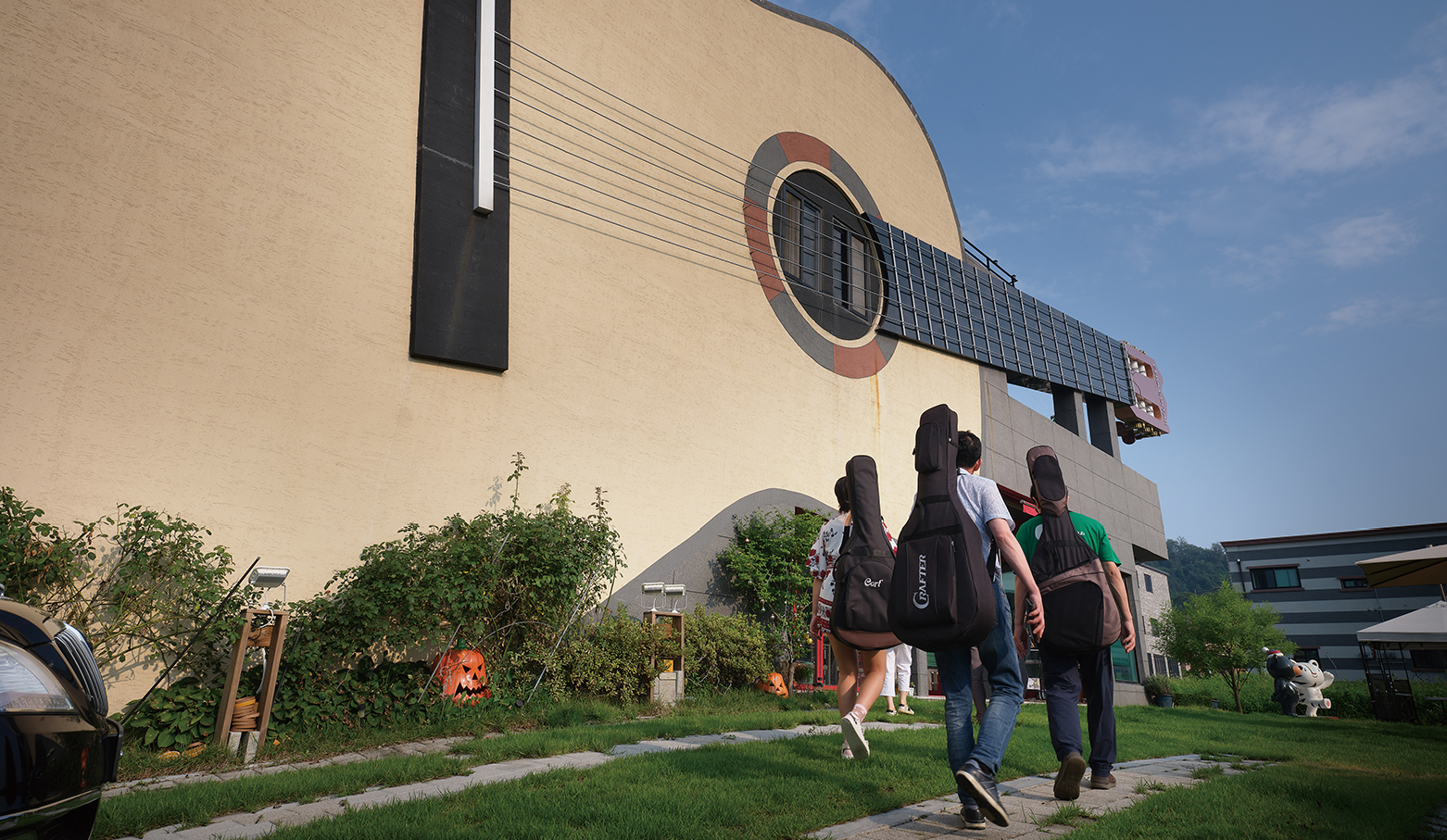 Members of a guitar club head for the Cera Guitar Cultural Center to take classes or play.In spite of having been open for just a year, Ye’s Park hosts a variety of festivals that attract large crowds. The park is divided into themed sections: Gama Village, Hoerang Village, Byeol Village, Sabujak Road and Café Street. Each section features vibrant festivals and flea markets.