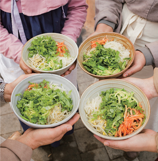 These activities can make even the most energetic visitor hungry, so true to its nickname of “the city of rice,” Anseong offers white and five-grain rice made in huge iron pots in furnaces and mixed with fresh vegetables during the festival. When shared with others, bibimbap tastes better. A 50-meter roaster also churns out roasted sweet potatoes that can serve up to 1,800 people, and the smell of freshly puffed rice wafting through the air is irresistible. Fresh agricultural produce from the area made year-round is also available for purchase at the market.