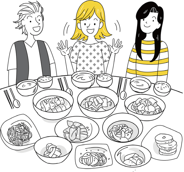Jessie: I was quite surprised when I first saw how many side dishes are placed on the table.