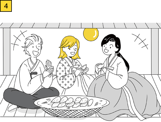 Su-hyeon: Do you guys know that the main Chuseok food is songpyeon (moon-shaped rice cake)? Let’s make songpyeon during the holiday.