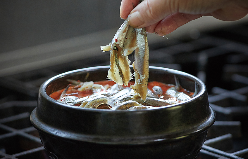 Ways to eat anchovy are diverse. Cleaning freshly caught anchovy on the spot and mixing it with traditional vinegar that ferments makgeolli (milky rice wine) before eating quickly stimulates the appetite. Sweet and sour raw anchovy are seasoned with vegetables like water parsley and onions and then marinated with red pepper paste after their intestines are removed, and this makes the mouth water once tasted. The anchovy can also be eaten in a stew when ripe kimchi and anchovy are added to soybean paste. Residents also enjoy anchovy stew and makgeolli as snacks and present-day raw anchovy dishes are said to have been invented thanks to the practice of dipping raw anchovy in makgeolli.