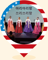 The performance was presented by ethnic Korean artists active in the U.S. and Korea. Part 1 featured the gayageum (zither) ensemble Salpuri that accompanied the byeongchang (solo singing and playing) and a choir of folk songs introducing traditional Korean culture through performances of traditional music and dance. Ji began Part 2 with her “Gayageum Sanjo” in the style of Seong Geum-yeon, followed by “Ensemble Sinawi” using improvisation similar to jazz musicians, attracting thunderous applause from the audience.