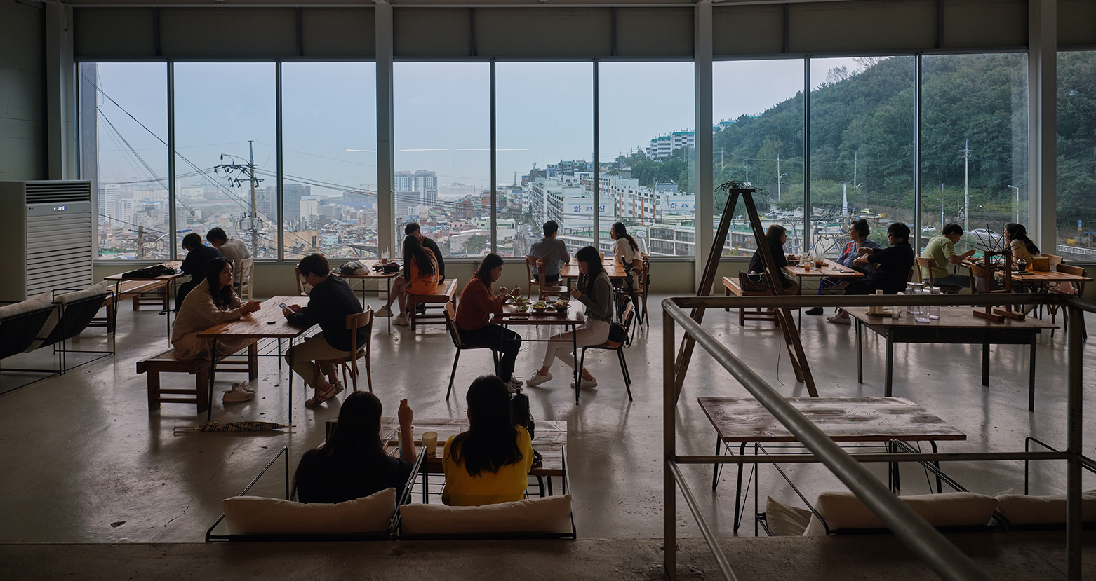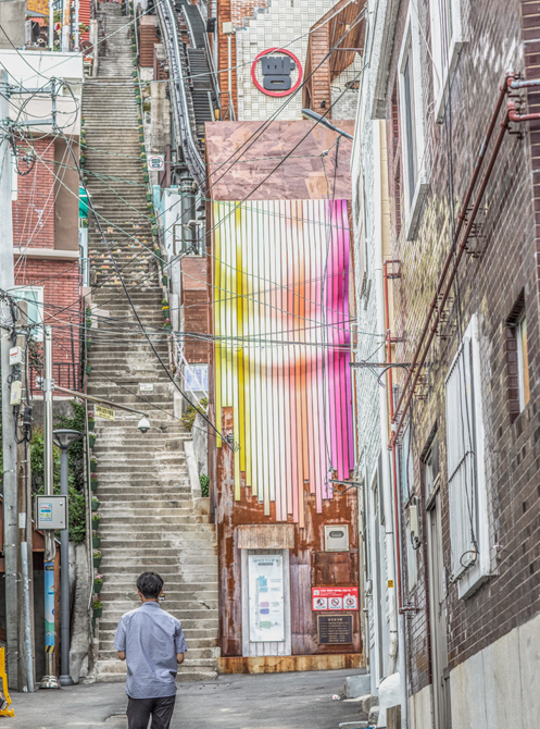 Sanbok Road is rugged with a steep slope and an uneven road. The plethora of residential areas is crowded and sophisticated, and within each is a series of labyrinthine alleys. Seeing Busan’s inner scenery for the first time, I felt as if I was looking at long panoramic photos.