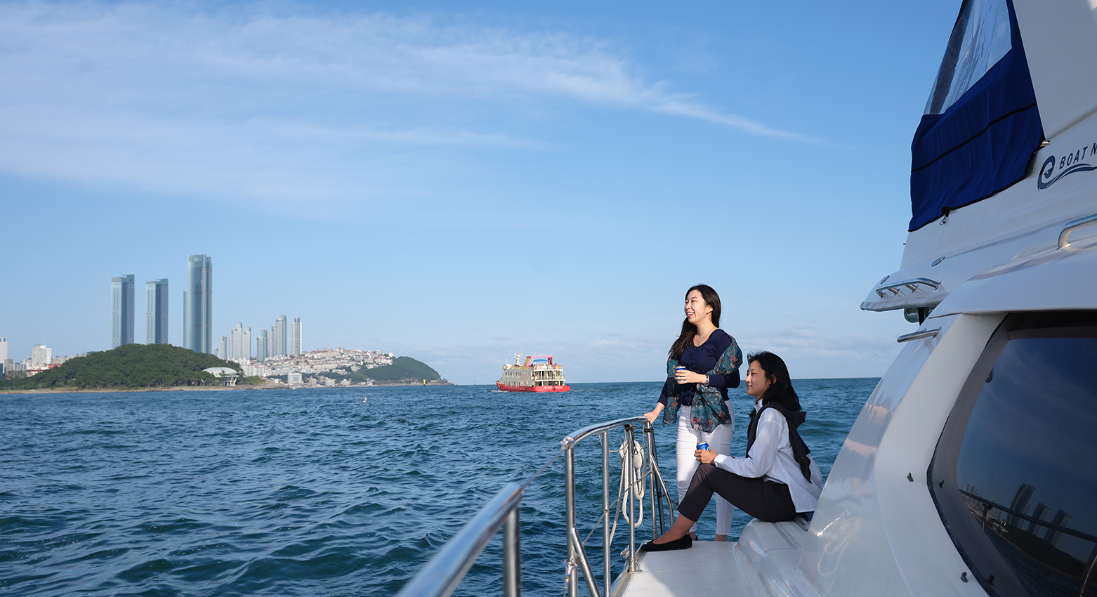 One of the yacht tours offered leaves from Gwangandaegyo Bridge and passes through Haeundae and Marine City to bring visitors to a surreal view of Haeundae. If the bridge is lit, the view is even more gorgeous. Multicolored beams reflect off the waves and glitter, and lights gush from buildings in the area for a magnificent scene.