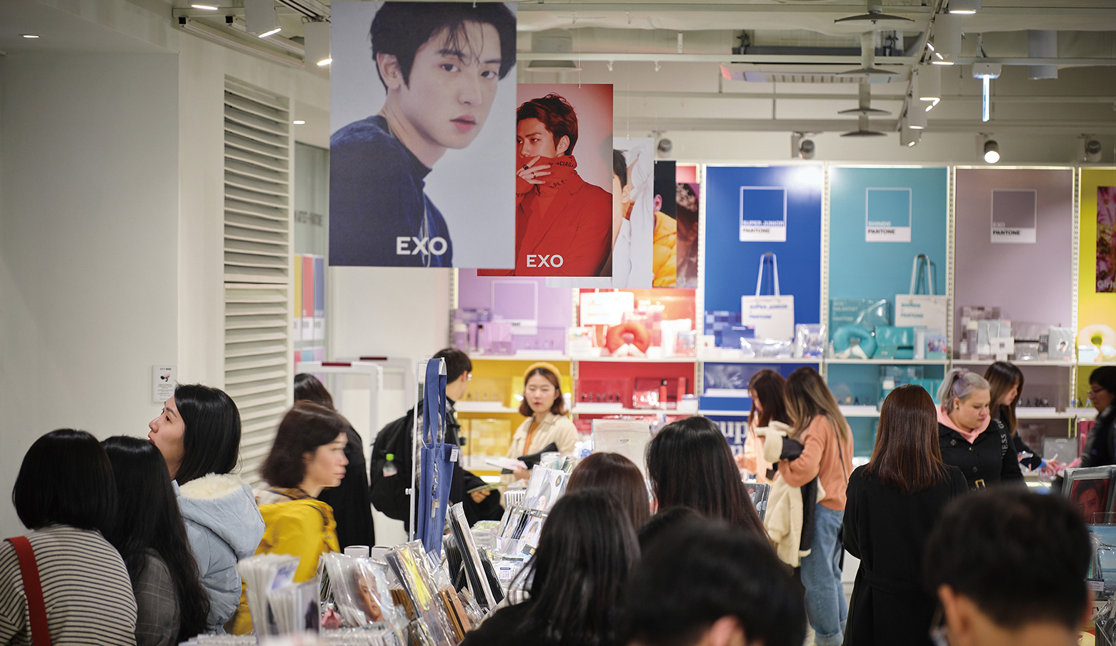 The temporary BTS pop-up store in Seoul’s Gangnam District attracts a long line of fans from early morning.