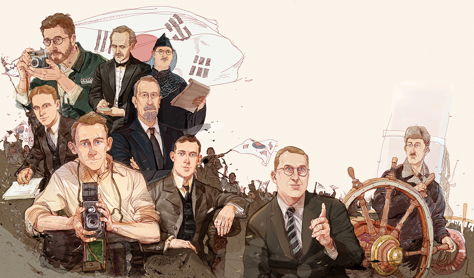 Albert Wilder Taylor (1875-1948), Frank William Schofield (1889-1970), George Lewis Shaw (1880-1943), Ernest Thomas Bethell (1872-1909), William Alderman Linton (1891-1960), Frederick A. Mackenzie (1869-1931), Fuse Tatsuji (1880-1953), Homer Bezaleel Hulbert (1863-1949) and Horace Grant Underwood (1859-1916) were instrumental in the liberation of Korea from Japanese occupation.