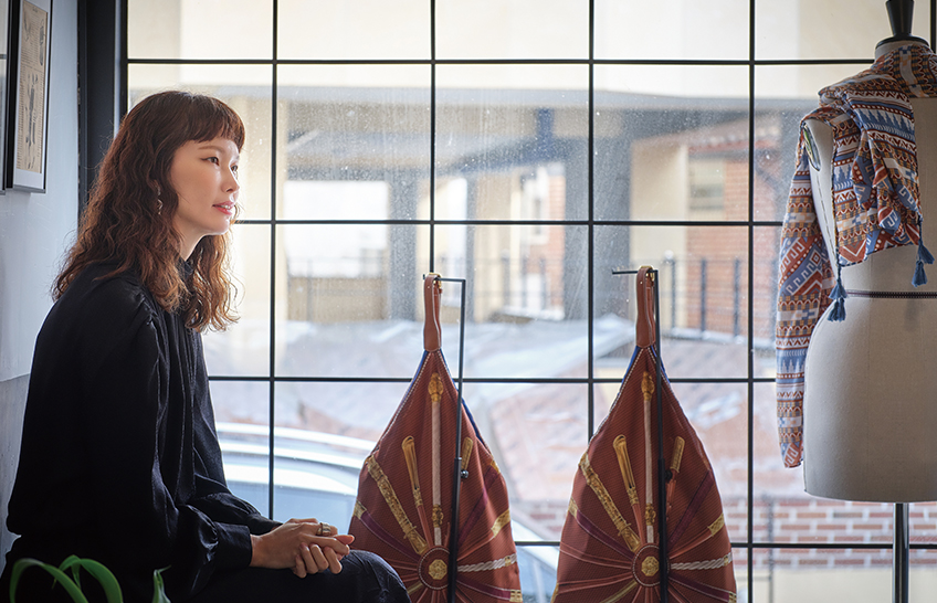 “Modeling is a profession for expressing clothing. I launched the brand 1st Rumor because I wanted to express myself,” she said. “The newly launched bag was named ‘Hippie Bag.’ I created color blocks by weaving leather with different materials and spiced them up with the color yellow, which represents retro style. Needless to say, this season’s trend is retro. Clothing pulled from your parents’ closets is the best. I failed to realize this before but I recall how beautiful the embroidery my grandma did on silk pillows was when I was a child. The rotation of trends implies that beauty is nestled in everyday life. I want to keep expressing myself so that I don’t get too familiar and lose my touch.”