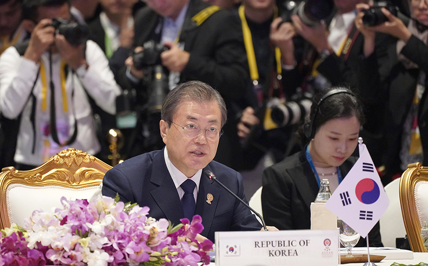 Visiting Thailand in early November just ahead of the Korea-ASEAN special summit in Busan, President Moon urged at the ASEAN Plus Three Summit the need to further advance the cooperative mechanism and make joint responses to diverse crises.