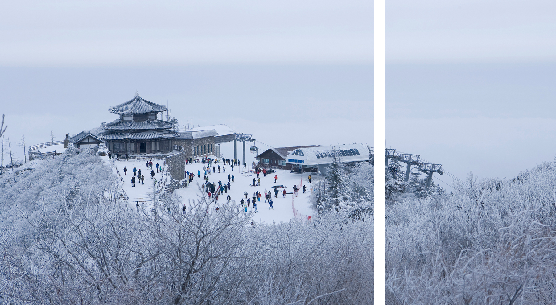 The wind also causes gems to be formed on the mountain every winter. Snow lies thick on skinny branches and repeatedly melts and freezes, and Deogyusan’s cold wind blows to create blade-like ice by texturizing a grain and sharpening a blade repeatedly, producing gems.