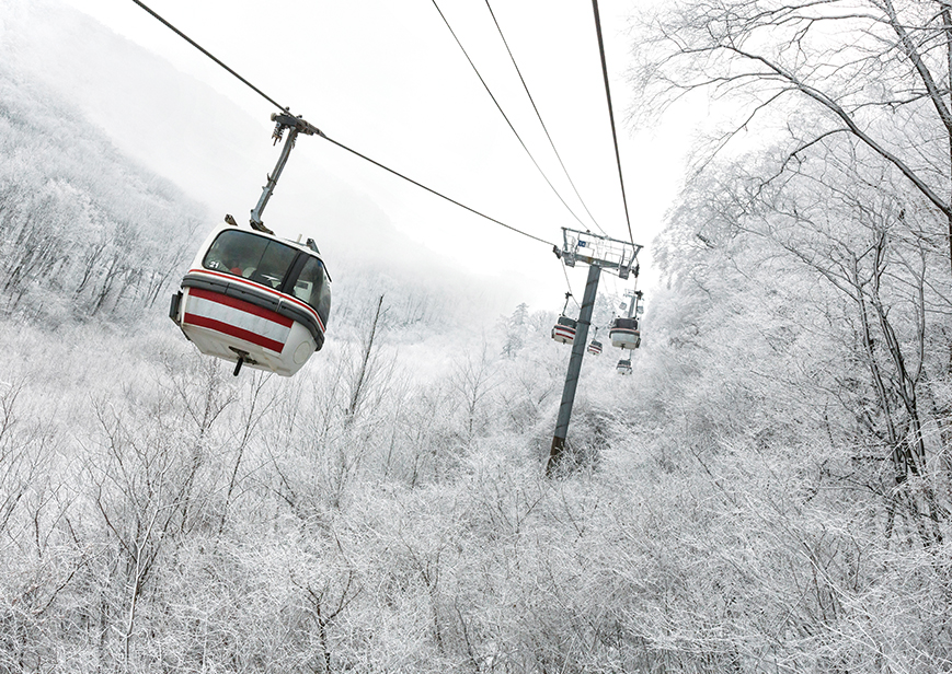 The gondola lift quickly brings visitors to Hyangjeokbong Peak, whose elevation is 1,614 meters above sea level. © imagetoday