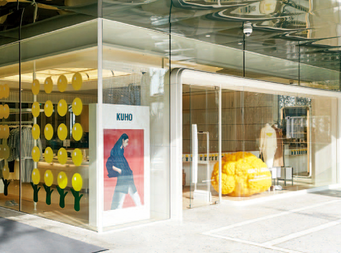 From its entrance, a brand’s flagship store is imbued with an aesthetic boost from its collaborative pieces with Gu Sena. © Gu Sena
