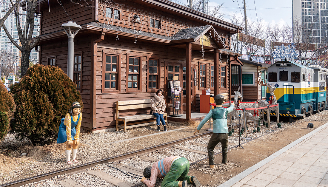 Gyeongamdong Railroad Town is a nice place to take a family portrait.