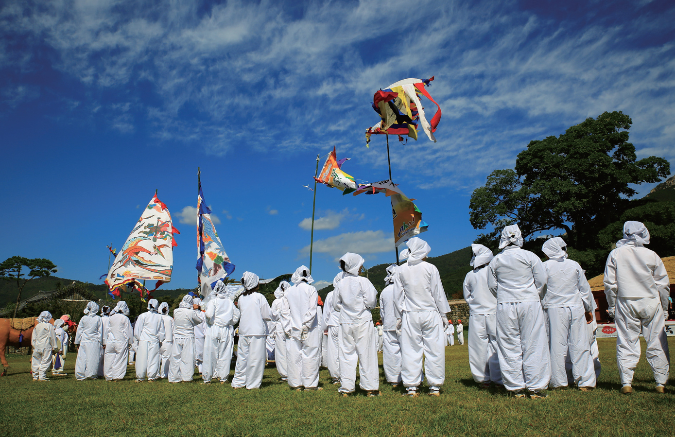 In a reenactment of a traditional farmers’ performance, performers are clad in white, the color most frequently worn by Joseon’s laypeople. © pixta