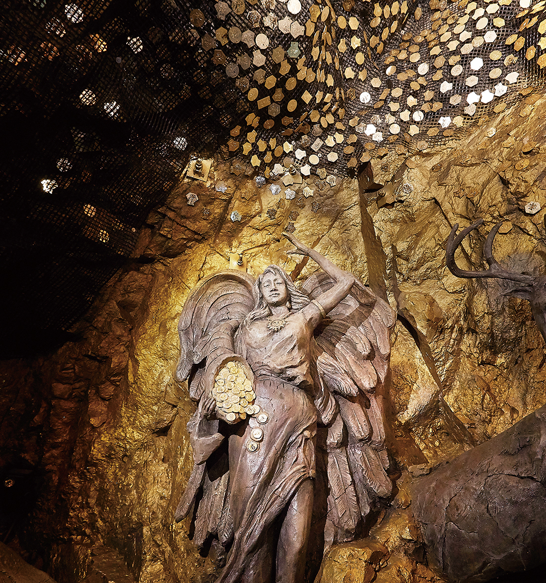 Proceed through the corridor that gold miners passed through for excavation in the past to reach the secretive area of Aisha, the blacksmith fairy. Her imaginary habitat is a six-pillar golden palace where gold is produced and stocked in a gold room. Visitors throw coins into the golden vault to wish for their own wealth and post their written desires on the Golden Plaque Wall of Wishes on the Golden Road.