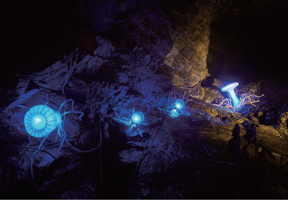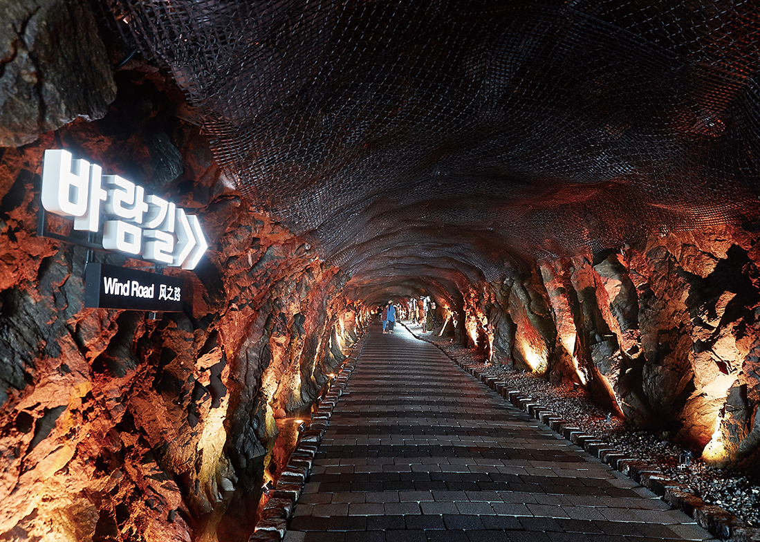 The exploration of the cave starts with Wormhole Square, which opens a divergent road. On the walls is LED lighting shaped like marine organisms. Follow the bright fish straight into the cave to find a large square the size of a field and Korea’s one and only Cave Arts Center. Decked out with seating for 350 people, the center plays a CGI-enabled media facade on the domeshaped cave wall every 20 minutes. Lasting ten minutes, the show features flamboyant primary colors as an impressive experience in new media arts against the backdrop of natural darkness. Occasional performances by orchestras, fashion shows and cultural exhibitions are also held.