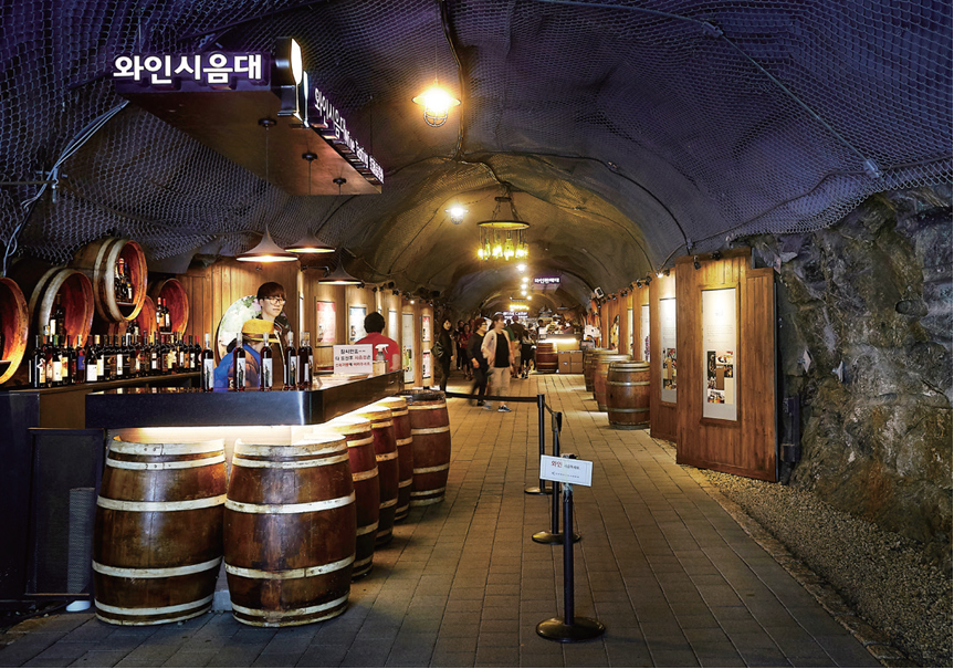 To help domestic wine manufacturers overcome this hurdle, the city government assembled 200 kinds of wine sourced from 49 wineries nationwide, the biggest stash of its kind in the country. Since 2015, the Korea Wine Festival is hosted every year to promote Korean wine. The consistently mild temperatures of Gwangmyeong-donggul Cave make it ideal for wine storage, and this has made the venue a national mecca for domestic wine.