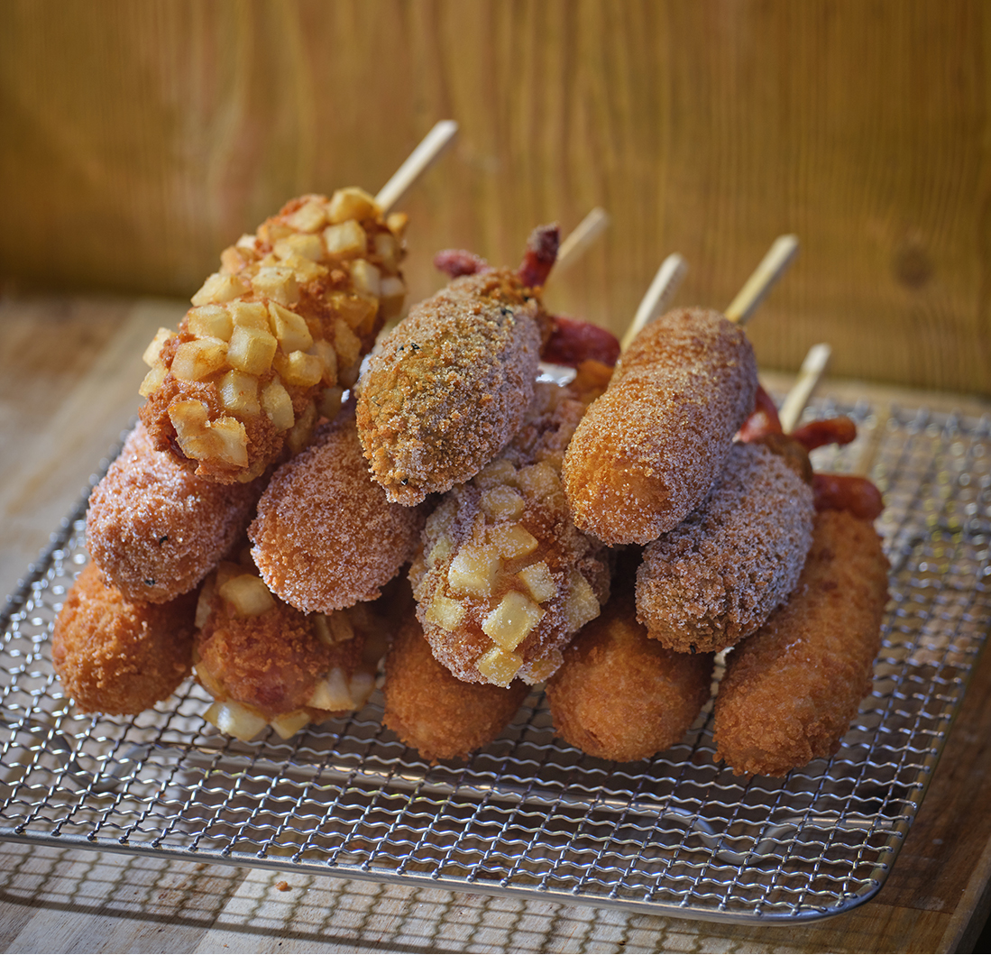 A corn dog can be made of not only sausage but also tteok (rice cake) and cheese.