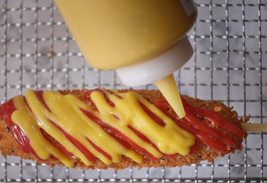 Koreans have every reason to be proud of their corn dogs like New Yorkers do of their beloved bagels. The battered and deep-fried street food version of a K-corn dog is one of the most popular in the country. Once the dough reaches optimal crunchiness, spicy, salty or sweet toppings await to complement the hearty mix, and the ease of taking a corn dog while on the go is another advantage.