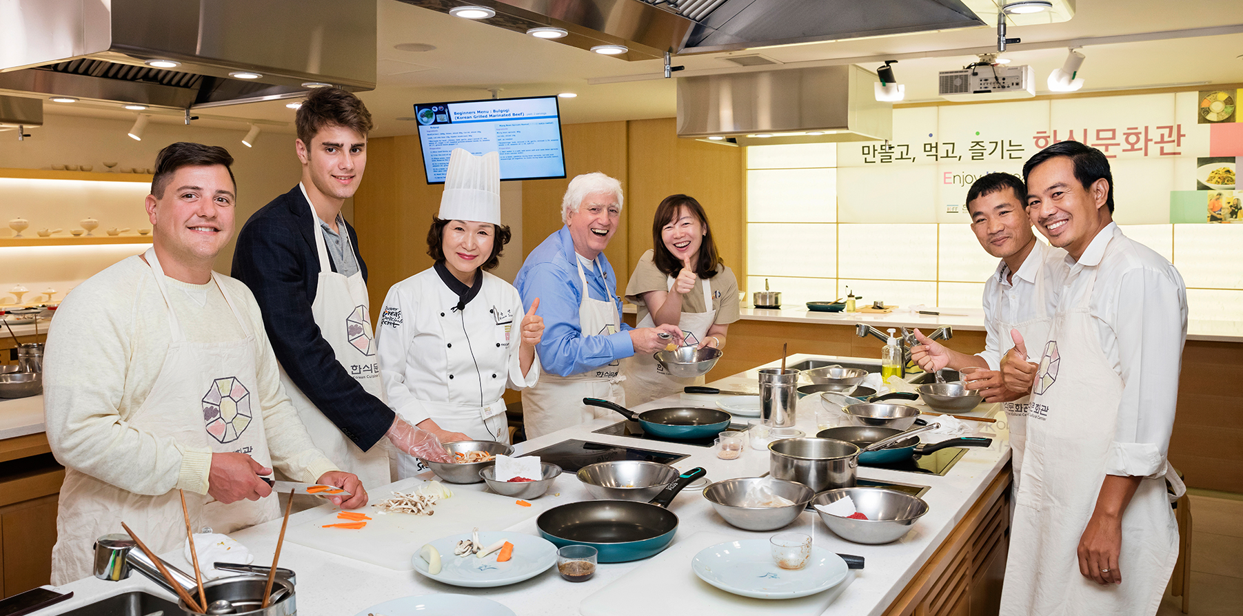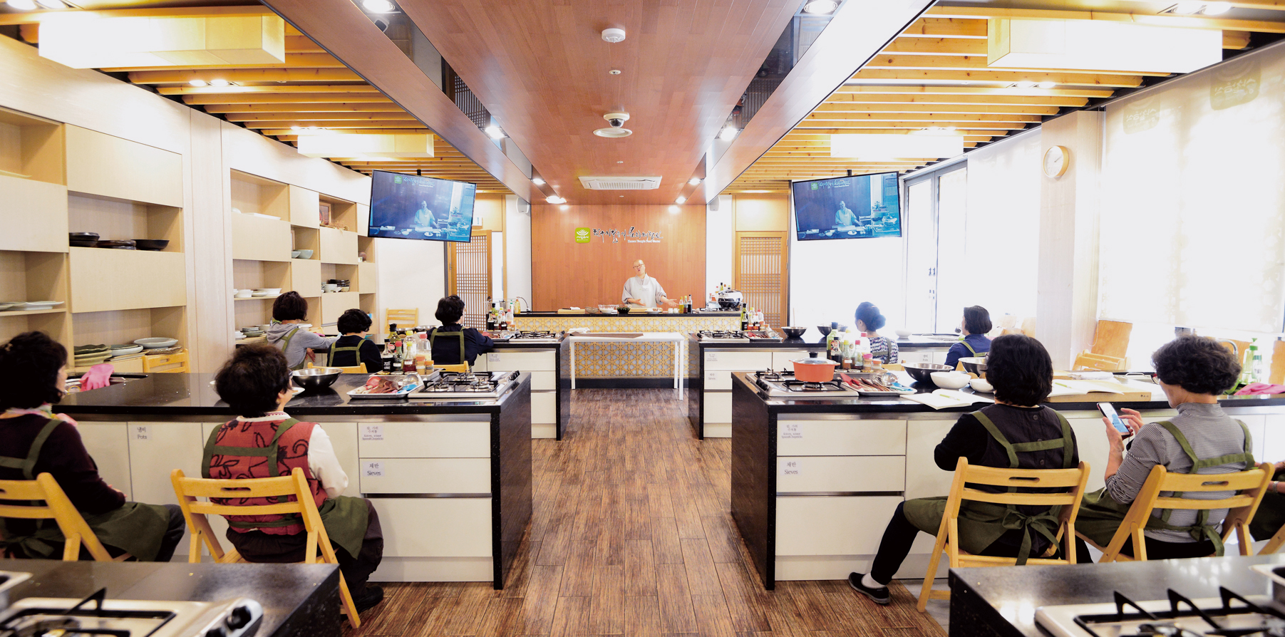 Operated by the Korean Food Promotion Institute, the Korean Cuisine Cultural Center is a cultural complex equipped with space to cook and serve Hansik. Expert instructors engage in culinary storytelling to provide an animated cooking experience that even novices can follow. In addition to an expansive array of Hansik ranging from bibimbap (spicy rice bowl with vegetables), japchae (stir-fried glass noodles and vegetables), tteokgalbi (grilled short-rib patties) and haemultang (spicy seafood stew), lessons on traditional desserts are available. Interpretation in English, Chinese and Japanese can be requested on a reservation basis.