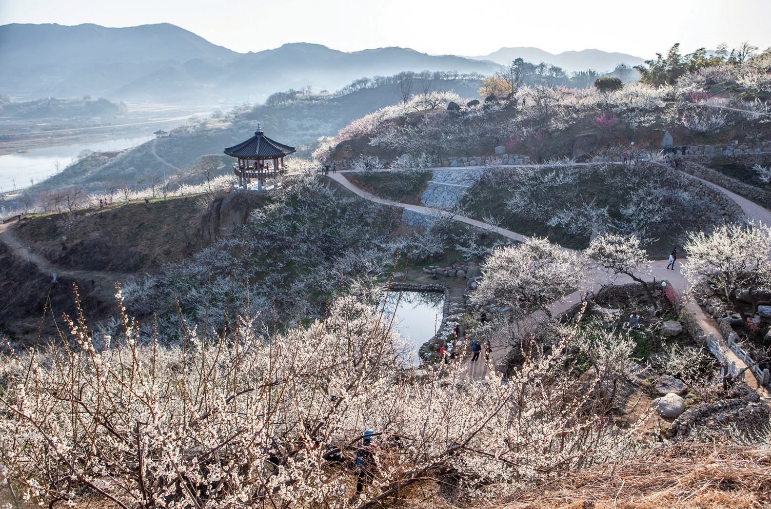 Spring’s arrival feels proper only once plum blossoms come out in Gwangyang Maehwa Village in Gwangyang, Jeollanamdo Province. After spending winter in what felt like a state of hibernation, I felt the time was ripe for plum blossoms. Instead of harvesting grains, villagers planted plum blossoms. The clear breeze and wet-fogged daybreak of the Seomjingang River created an ideal environment for the blossoms to flourish. As a result, the village arose as a beloved destination for natural flora.