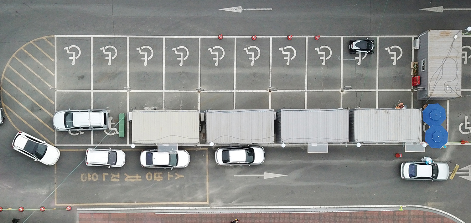 The advantages of drive-thru testing booths include ensuring a testee’s privacy, preventing cross-infection via natural ventilation and minimizing contact through e-payment.© Incheon Medical Center