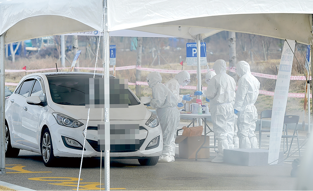 As of March 2020 and under Korea’s testing standards, Dr. Kim’s drive-thru screening clinic only takes a third of the time that it previously took per test. © YonhapNews