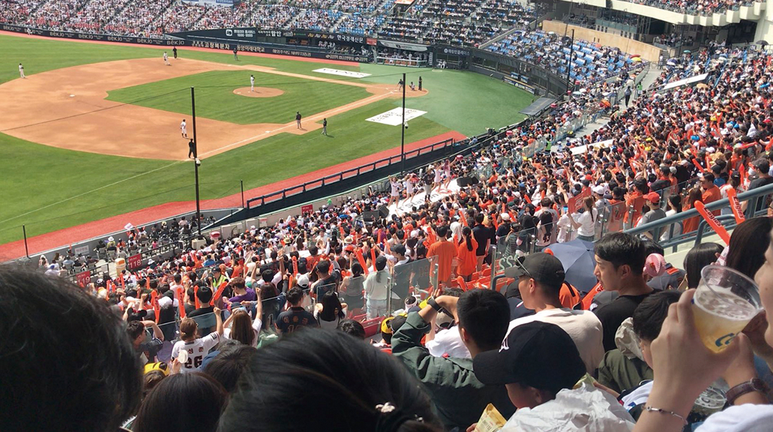 The first baseball game I attended in Korea was in 2016 between the Doosan Bears and the LG Twins, two teams based in Seoul. I was quickly amazed by the heated intensity of the entire stadium. Outside, vendors sold fried chicken, dried squid, ramyeon (instant noodles) and large bottles of beer that fans took to their seats. Inside, the atmosphere was electric. Each batter who approached the plate had a song; cheerleading squads from both sides pumped up the crowd. When Bears first baseman Nick Evans, who once played in MLB, was at bat, fans sang lyrics like “Oh, oh, oh, oh, oh, oh, oh, oh, Ye-beon-seu!” to the tune of 2NE1’s “Fire.” The words to a K-pop song were modified to cheer the power hitter.