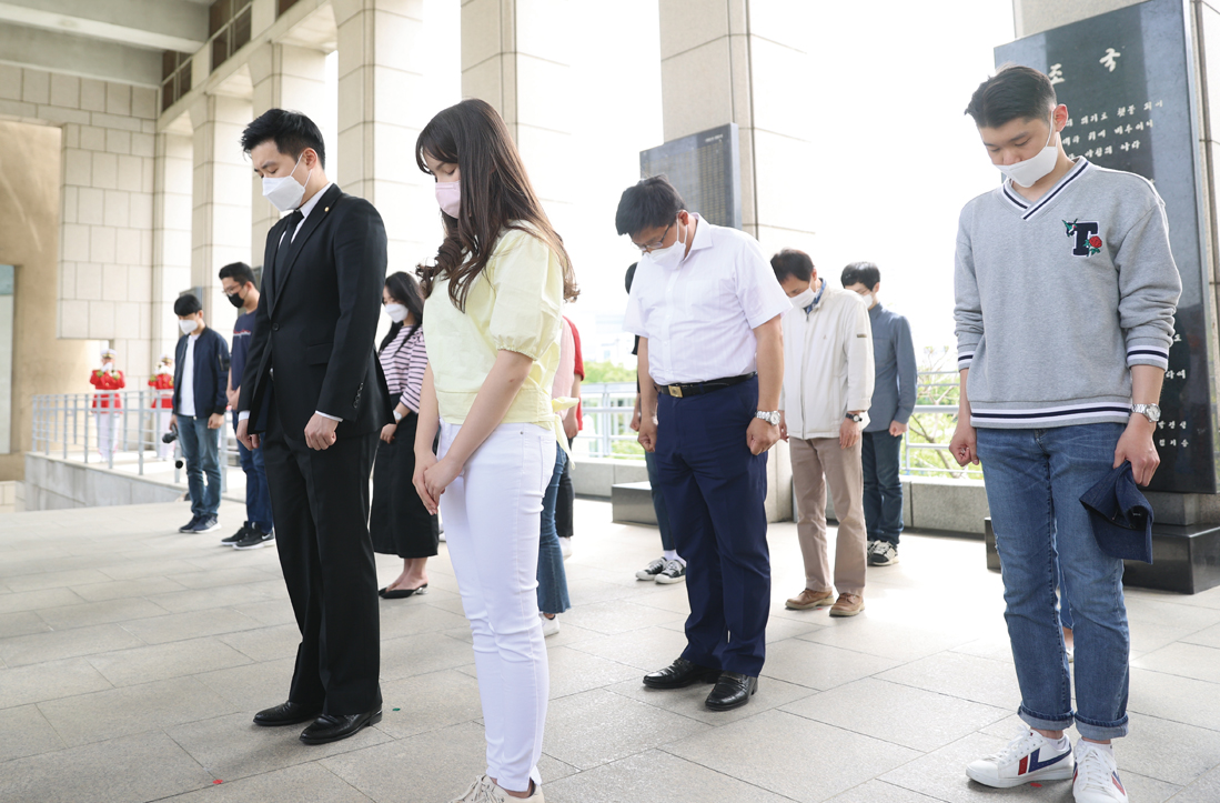 At the War Memorial of Korea in Seoul’s Yongsan-gu District on May 14, volunteers for the 70th Anniversary of the Korean War Commemoration Program take part in a floral tribute. © 70th Anniversary of the Korean War Commemoration Committee