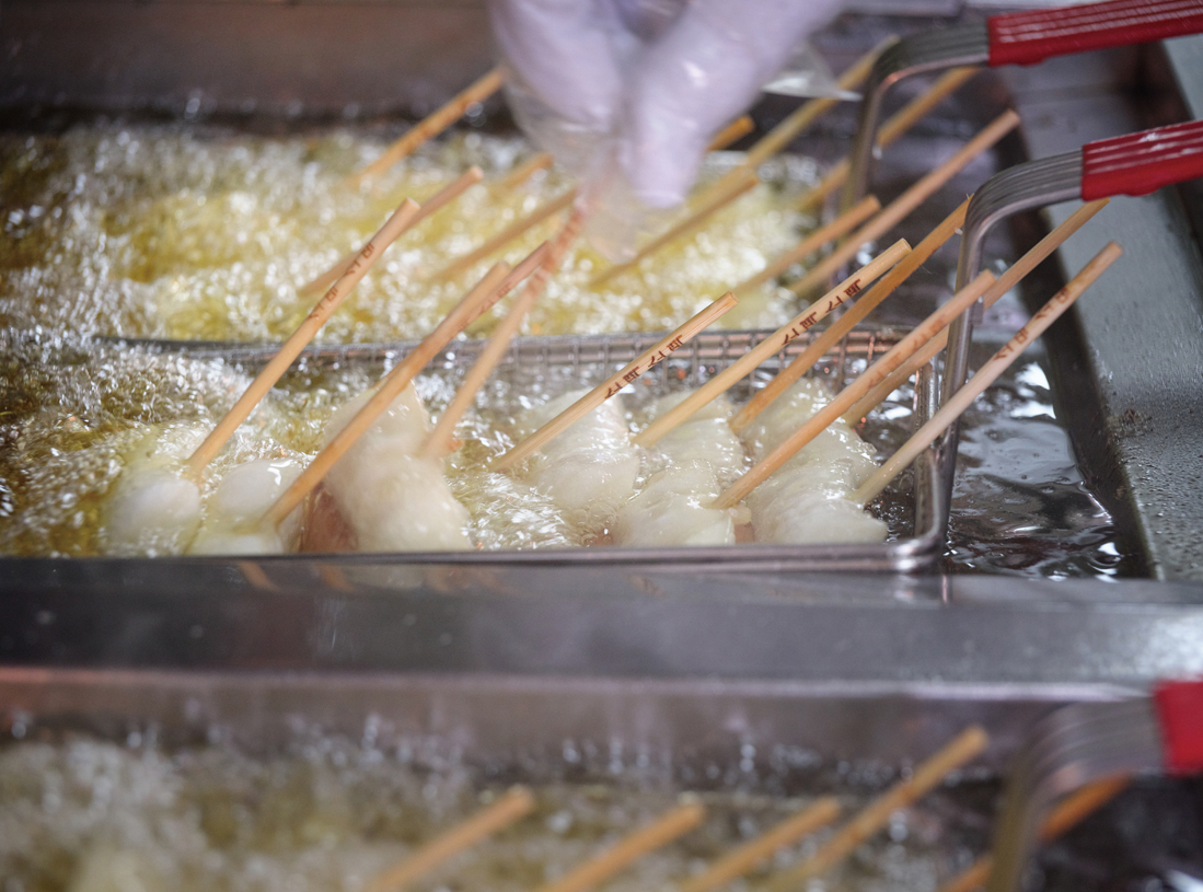 At the Busan-facing Anseong Service Area, so-tteok so-tteok skewers are deep fried in oil.