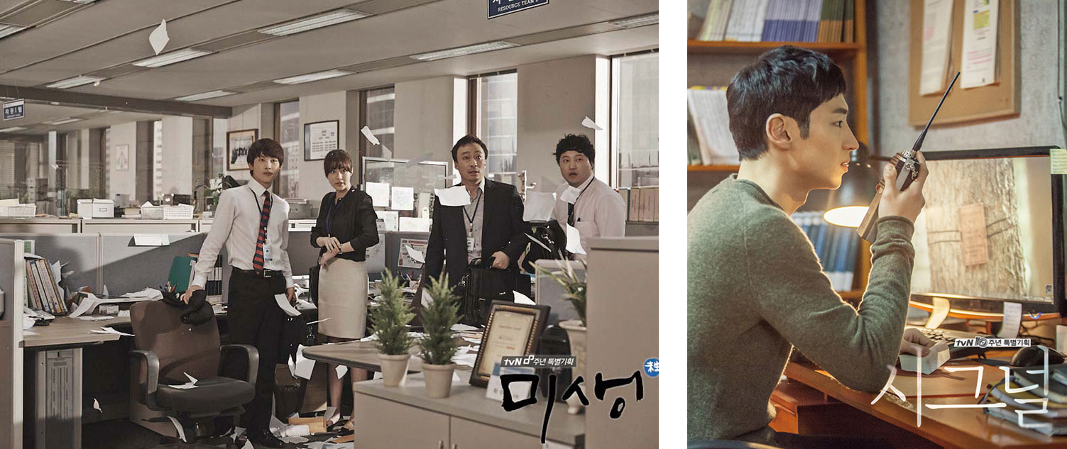 Realistic portrayals of office politics in “Misaeng” captivated white-collar workers in both Korea and Japan.(left) / “Signal” features a criminal case inspired by the real-life serial murders in Hwaseong, Gyeonggi-do Province, that occurred from 1986-91.(right)