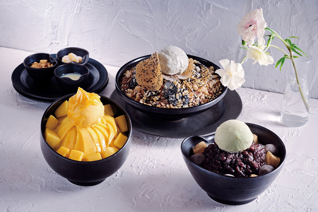 From general cafes, luxury restaurants and specialty franchises to neighborhood stores, bingsu in Korea is easy to find in summer. In the high-end category, bingsu with Jeju apple mango, topped with the juiciest and top-rated mangoes, is a trendsetter spawned by hotels to supplement their dessert options. Many other options offer either fruity or healthy ingredients like honey, fruit or root preserves.