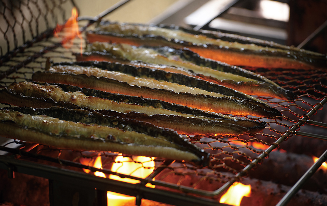 Grilled jangeo (eel) is either marinated in a sweet-and-spicy sauce (yangnyeom gui) or evenly salted (sogeum gui). © Studio Kenn