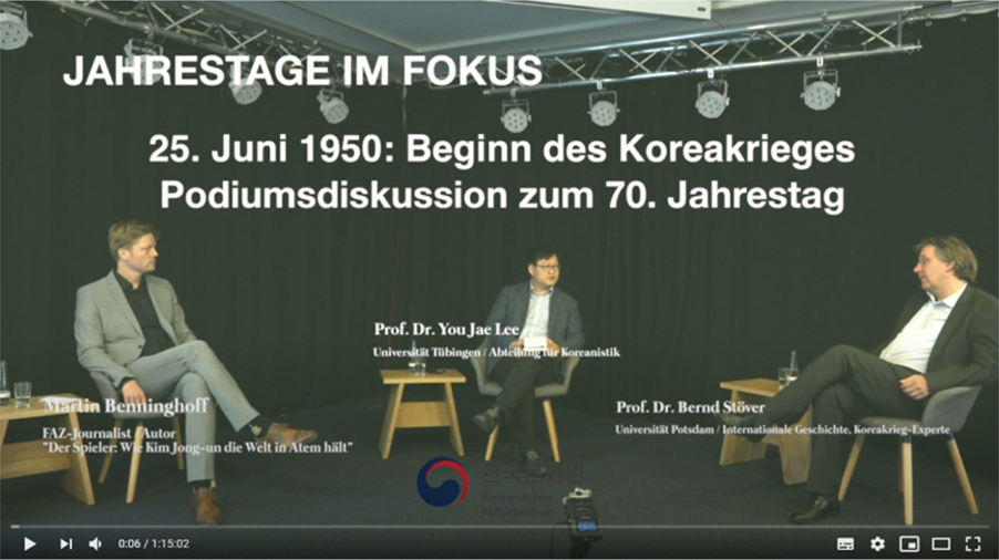Germany this year marks the 30th anniversary of its reunification. In commemoration of this milestone as well as the 70th anniversary of the Korean War’s outbreak, the KCC in Berlin hosted an expert roundtable on reunification and peace with professor You Jae Lee of the University of Tubingen, professor Bernd Stover of the University of Potsdam and German journalist Martin Benninghoff.
