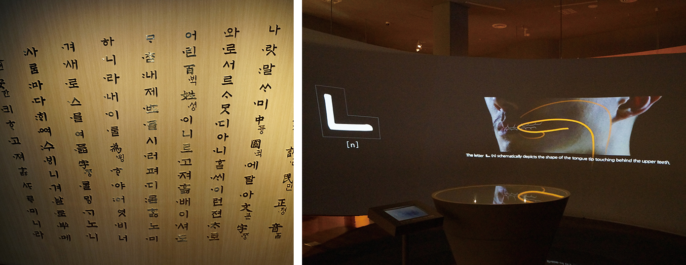 Part of the National Hangeul Museum’s permanent exhibition hall displays Hangeul-related documents and artwork under the theme “The Journey That Hangeul Went Through.” © shutterstock