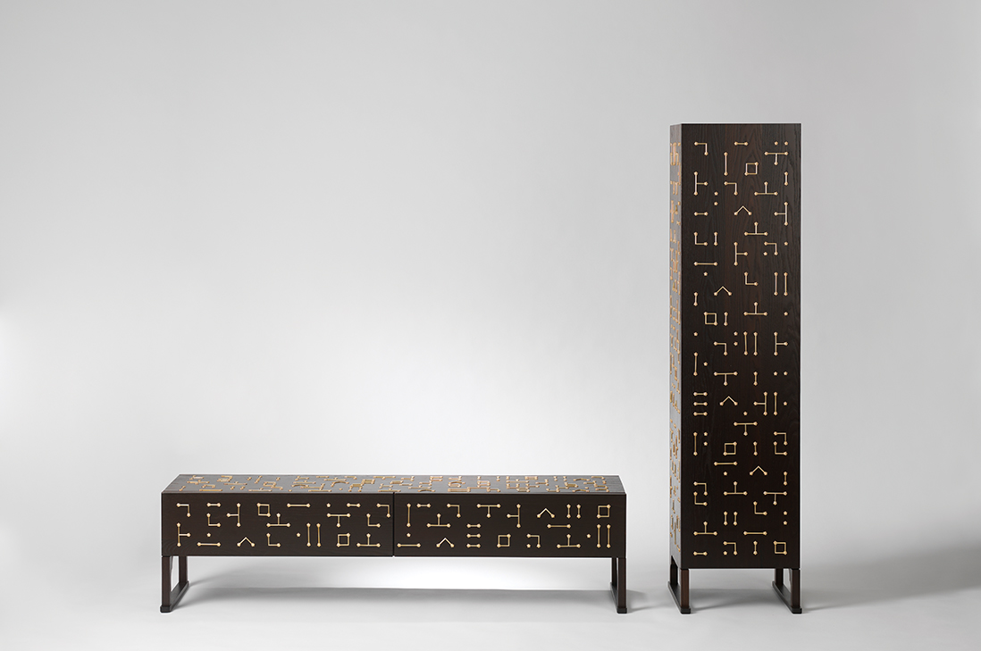 Ha Jihoon’s series of furniture is decorated with renderings of Hangeul vowels and consonants. © Ha Jihoon