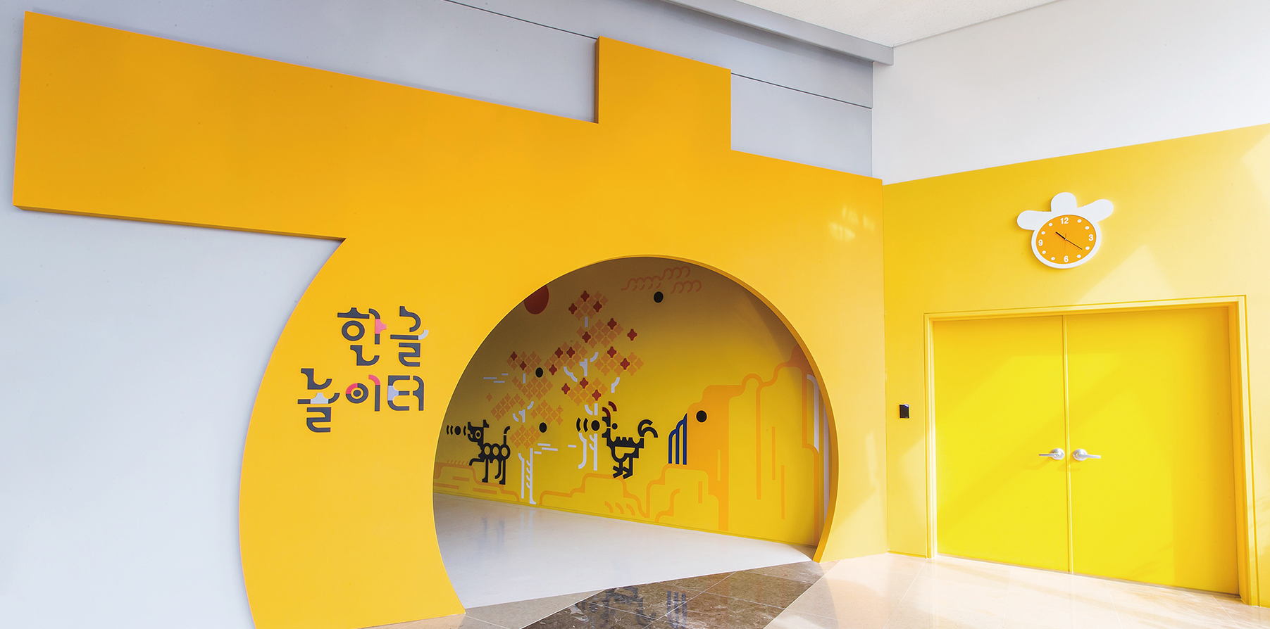 Among eclectic Hangeul-based programs offered by the NHM is Hangeul Playground, an experiential space for kids ages 5-9 featuring the sections Easy Hangeul, Pretty Hangeul and Come Play in Hangeul Forest. Easy Hangeul offers a handy breakdown for kids to understand the rational mechanisms of the Korean alphabet through fun analogies, like sounds, space and the concepts of partnership for understanding vowel and consonant combinations.