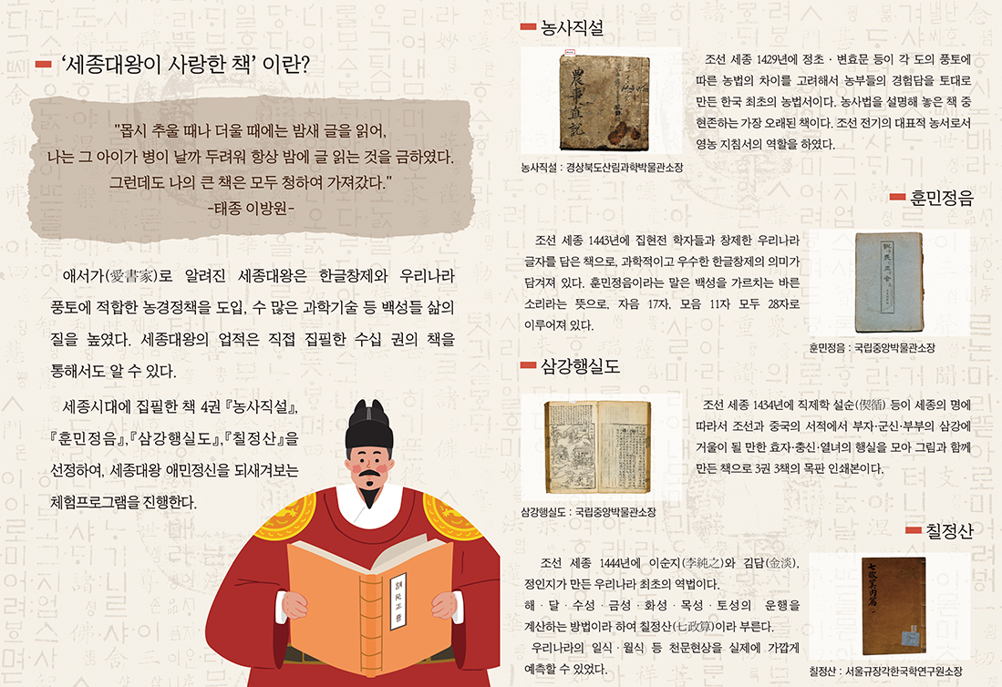 For history buffs, the museum since March this year has hosted the King Sejong Book Project, which features reference books credited to the monarch each paired with a crafty activity using stationary. On a monthly or bimonthly basis, a free event (limited to 30 participants) introduces a book on his legacy in Korean. For October and November, the astronomical reference book Chiljeongsan (Calculation of the Motions of the Seven Celestial Determinants) will be discussed. The work was compiled in 1442 to enable accurate observations of solar eclipses and constellation movements.