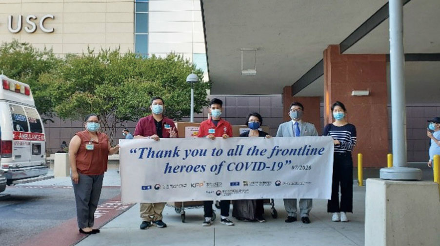 To honor medical practitioners and public servants and their consolidated efforts to combat the coronavirus, the KCC in Los Angeles and the Commission of Hansik Global prepared 2,500 lunch boxes of Hansik (Korean food) from July 13-27 to give to staff at five hospitals and four police stations in the Southern California city. Distribution began at the Good Samaritan Hospital in the city’s Koreatown, with 35% of the patients being ethnic Koreans. It was designated a COVID-19 testing facility on April 20.