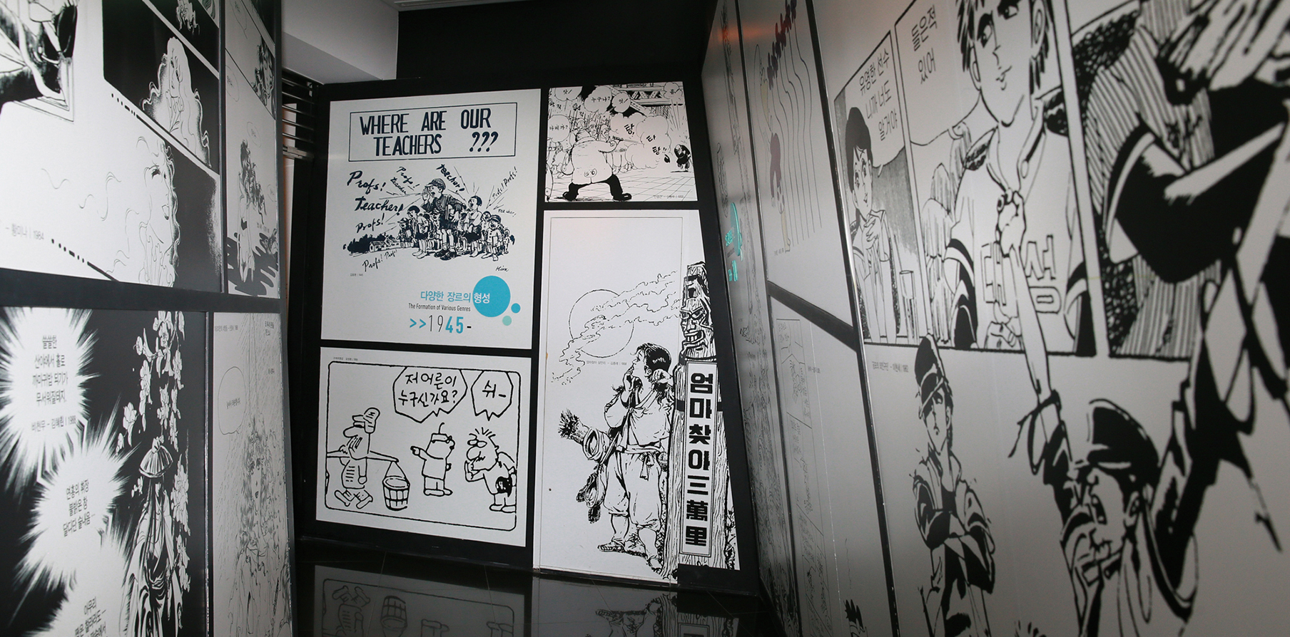 2. Line Webtoon is the world’s leading platform for digital comics. / 3. Manhwa (comic books) content appeals to children. / 4. Comics or cartoon-based figures and merchandise for sale are on display. / 5. Sketchpads are being more frequently utilized by both professionals or amateurs. / 6. “Along with the Gods: The Two Worlds” is a benchmark for adaption of a webtoon into other media. Shown here is a musical based on the hit webtoon at LG Arts Center in Seoul in June 2019.