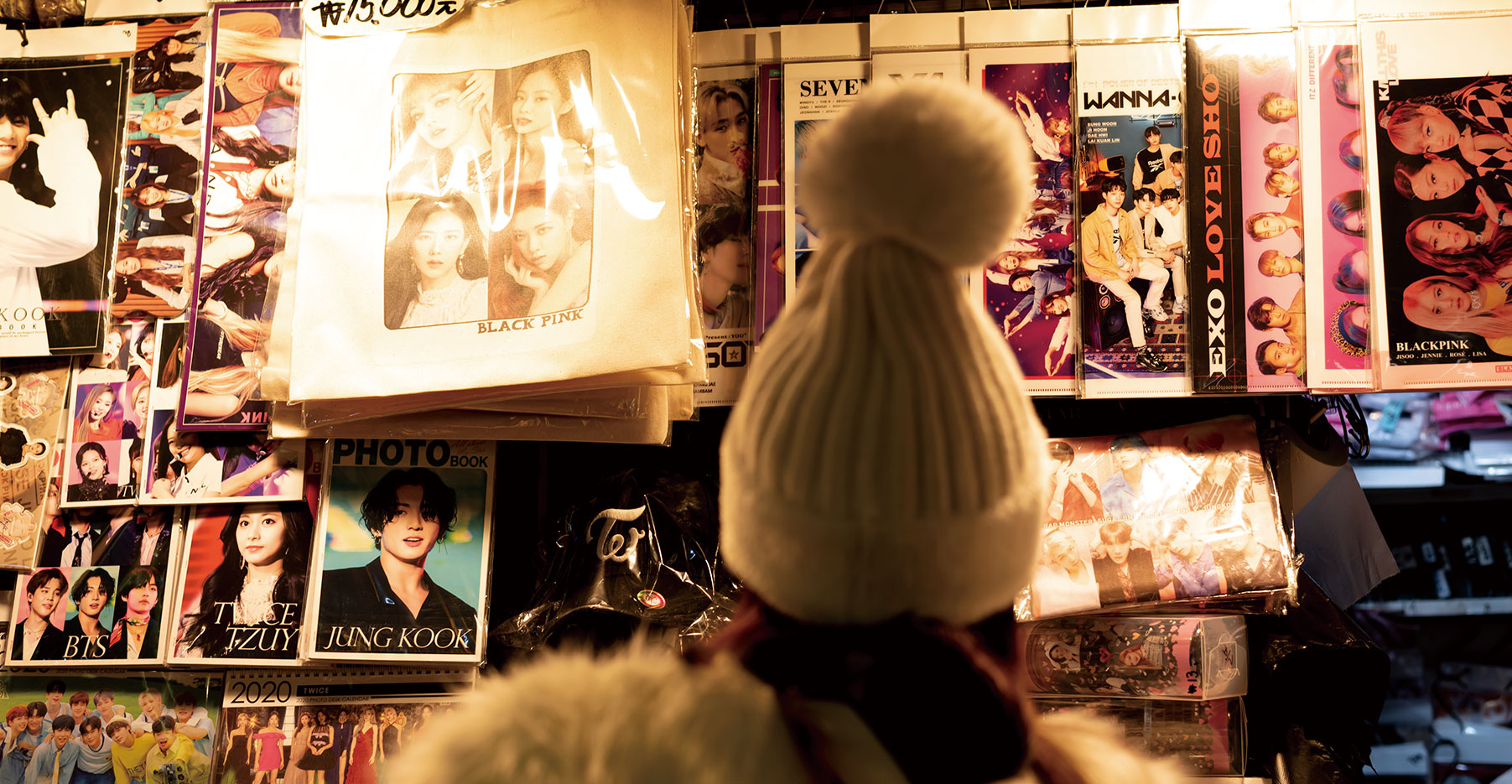 In Myeong-dong, a bustling Seoul district frequented by shoppers and international visitors, a shopping center for K-pop merchandise and souvenirs is located underground. The space is teeming with vendors fluent in English and Chinese, and customers can haggle a bit depending on a seller’s mood.