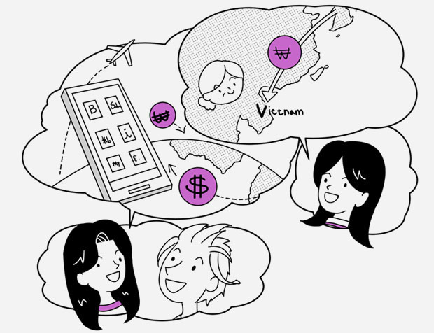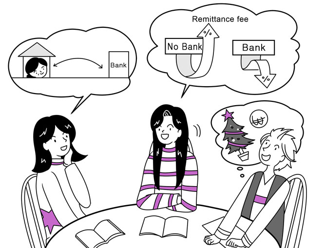 Huong has been saving money in Korea to help her mother in Vietnam repay a loan. Huong asks her friends for how to send money abroad safely and quickly.