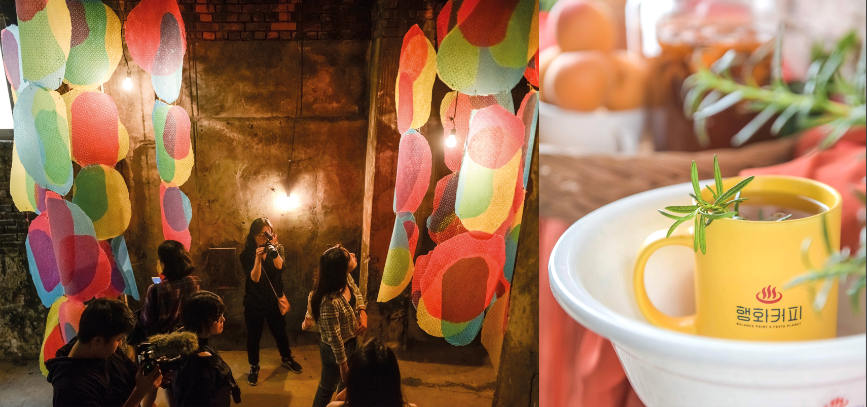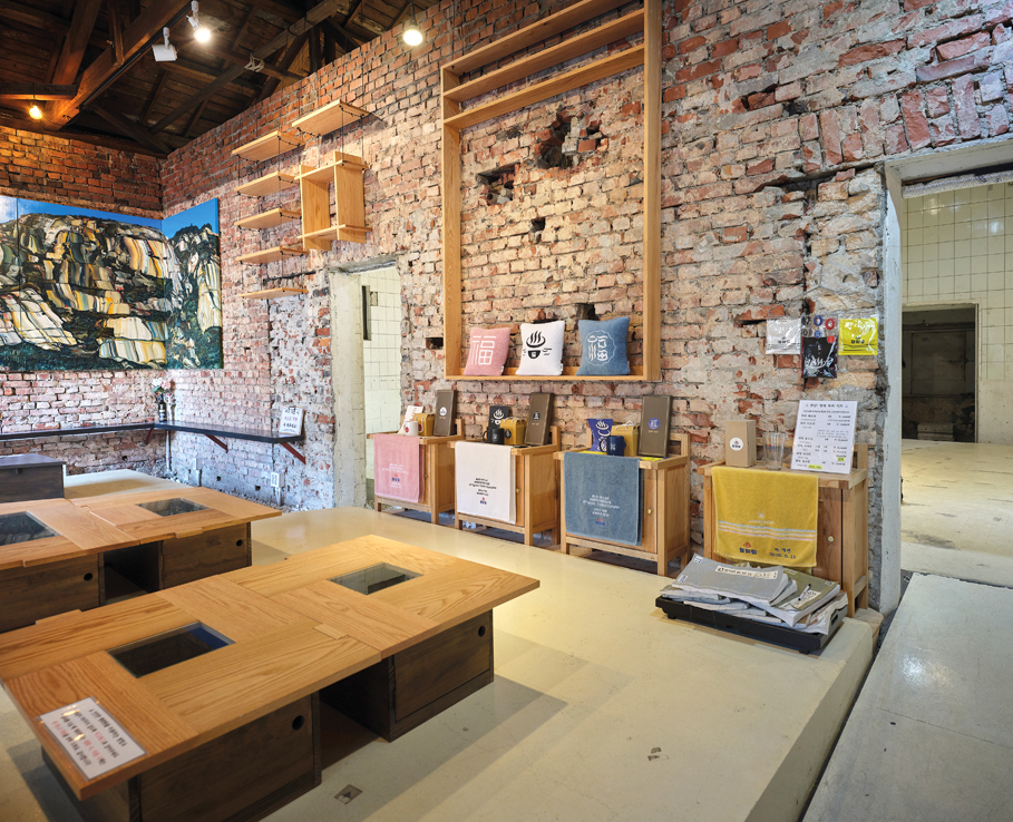 Taken in 2017, the space for exhibitions was formerly a boiler room for heating up the bathhouse waters. © Festa Planet / A signature menu of Haenghwatang (cafe) is haenghwa (apricot) tea. © Festa Planet
