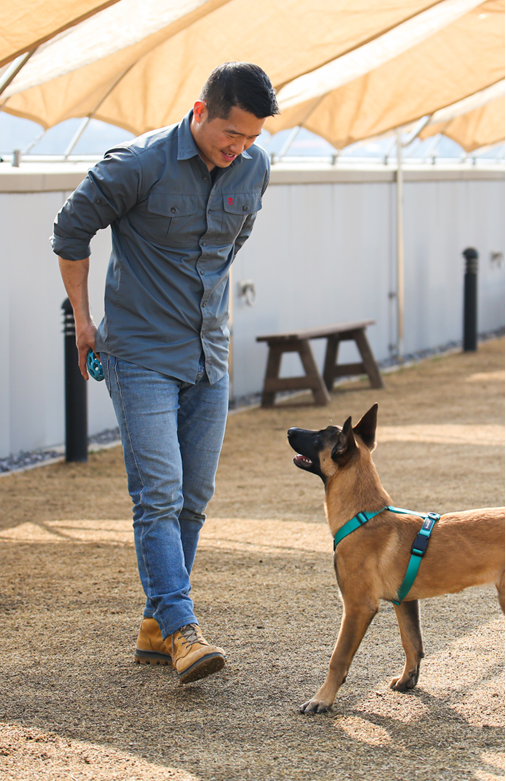 Despite his stature as a pioneer in his training methodology, Kang brushes off such descriptions with a jestful yet profoundly truthful attitude of humility. His larger-than-life achievements are faithful manifestations of the physical and physiological regimen he upholds just to keep himself in check. “It’s hard not to fall into mannerisms, which I suppose applies to an array of fields (not just in dog training),” he says. “There’s a saying that ‘to do what you want, you can’t do what you want to do.’ That’s a good way to summarize the magnitude of self-restraint I impose on myself in adhering to my strict day-to-day routines.” He continues, “Part of it, especially regarding my duties as a trainer, comes simply because I absolutely love engaging with dogs. But as a TV personality or ‘celeb,’ I need to guard my mentality carefully as to not fall under illusions that I am in any way special, or should be specially treated by others.”
