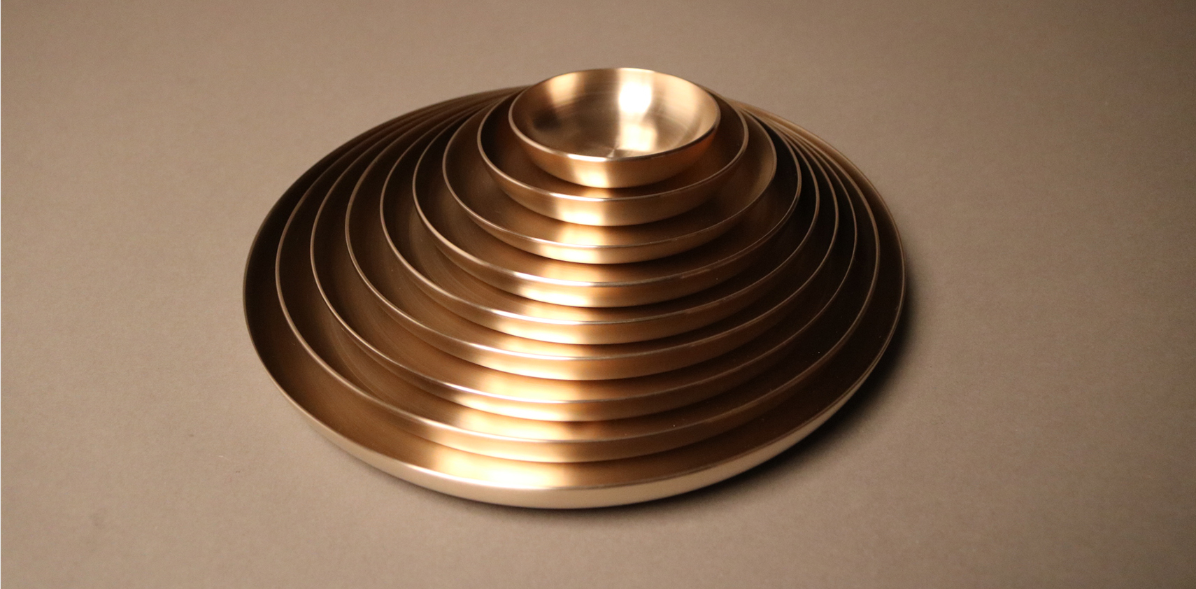 Bronze tableware retains heat well, which is unusual for a metal. For Korean meals served with soup, broth or stew, yugi acts as welcome bonus. Metals like bronze can also be sterilized in boiling water, which makes them a smart choice from a hygiene perspective. And while not as stain-proof as modern steel, yugi is still more resilient to discoloration than many other materials.