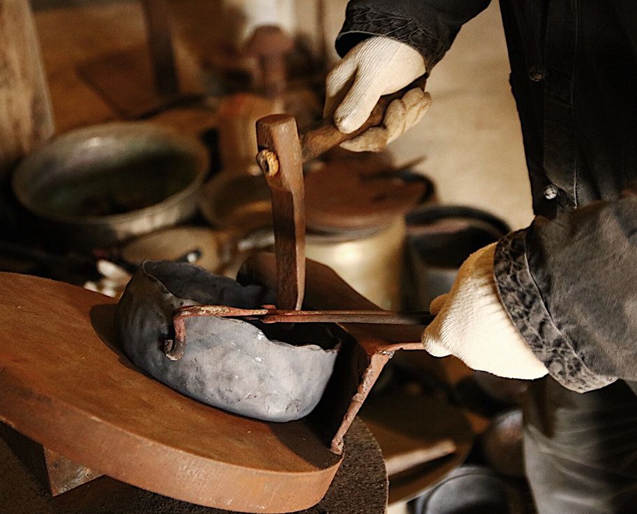 The process of creating an alloy of copper and tin to an incredibly precise ratio, allows for zero room for error. Once a nugget is formed, it has to be hammered repeatedly until the utensil’s exact shape is finally achieved.