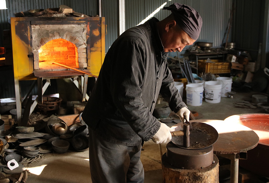 Making yugi is a painstaking process, a fact that goes a long way to explain why even today, a full set of bronze tableware does not come cheap.