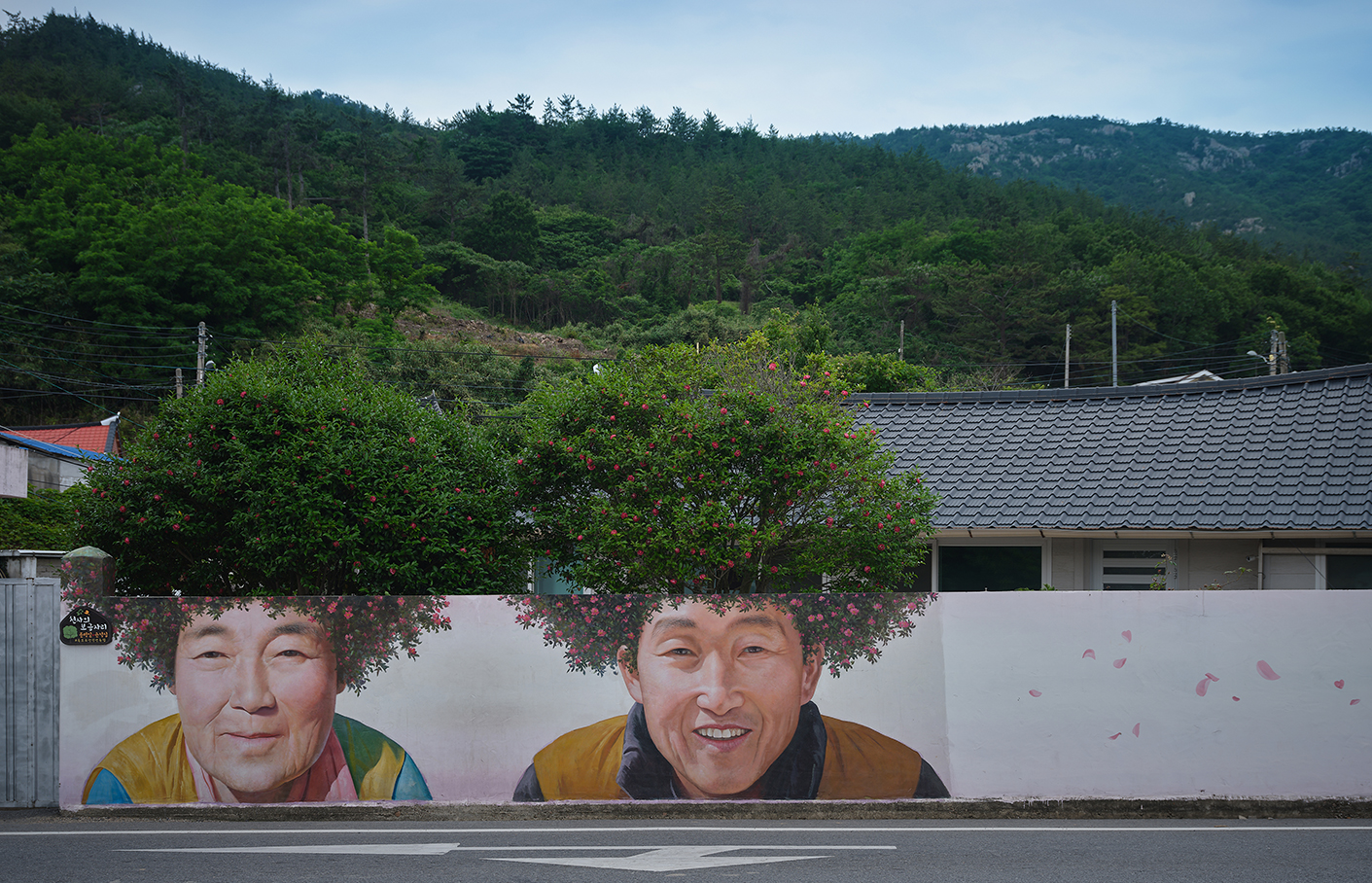 Interestingly, it is neither of these glamorous wonders that are the most frequented of Amtaedo’s tourist spots. Instead, an elderly couple’s simple, rural house is the most popular destination. Once no different in appearance than any other Korean-style rural house, their house started gaining attention once their faces were painted on the wall surrounding the house. The painting is special in the way it melds with the plantlife in the couple’s garden. Lush flowers and bushes complete the painting in a way that they act as depictions of the elderly woman and man’s hair. The imagery of candid love must be a heart-warmer for urbanites who pass through, noting the cohabiting immersion in nature both in terms of the elders’ residency and their lifestyle.